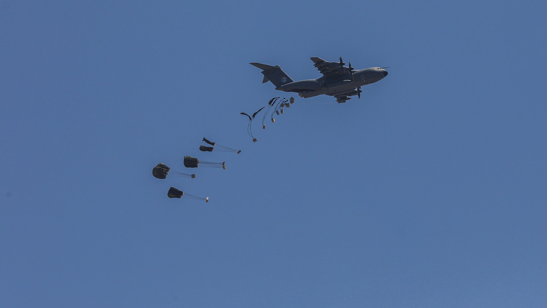 erschienen am 2. August auf RT de Bild: Eine Airbus-Maschine der deutschen Luftwaffe wirft Paletten mit Hilfsgütern über dem Gazastreifen ab, 1. August 2025. – Das UN-Menschenrechtsbüro hatte berichtet, dass …
